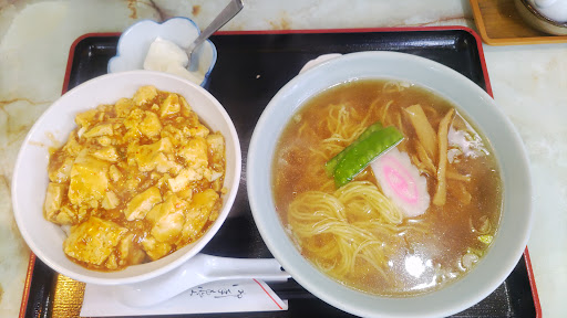 Read more仕事の帰り、駐車場が空いていたので来訪、店内はテーブル相席も有りな感じでしたが、3席あるカウンターに座りました。8/10、店内はちょい暑あかな。ランチのメニューから、ラーメンとマーボ丼(書いてある通り)をオーダー、カウンター越しの厨房ではオヤジさんが一人で料理を作っているせいでしょう、サーブされるまで15分以上掛かりました(順番的には5番目くらい)。 さて、ラーメンもマーボ丼も一人前、ガテン系かと思わせるようなヴォリューム、台湾系のお店のセットメニューを思い出します。 味はいたって普通、強いて言えば、マーボ丼はピリ辛、でもコレでイイと思うので...