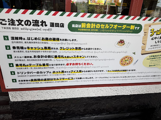 店員さんの愛想はないし、先に会計済ませてるから帰りに『ありがとうごさいました』の一言もない😣 店員が一人しかいなくて厨房や次に持っていく商品の準備をしているのかもしれない❗️(可笑しな話だけど‼️) 入口にチャイム📢が付いていて人が近くに来ているのは分かること❗️ 帰りの挨拶のないお店にまた行きたいと思わない😠 蓮田...