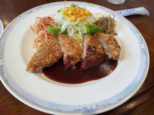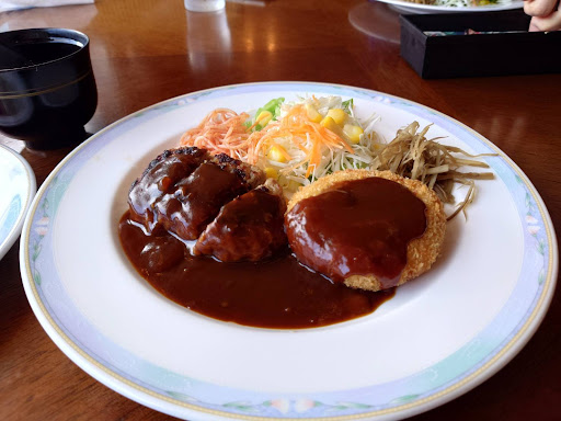 Read more土曜日のランチタイムに家族と一緒に初めて来店しました。失礼ながらかなりの山奥にある感じでクルマでだいぶ時間が掛かりましたしお店の外観を見て入るのを止めようかとも思いましたが折角来たのだからと入ると落ち着いた雰囲気の中で数組のお客さんが居て皆さんランチセットを食べられていました。我々もお店の売りのハンバーグともう一品を選ぶランチセットとサイコロステーキ定食を頼み待つこと10分位でライスとメインが別々の皿にで出て来ました、ライスは少なめで上品でしたがメインのおかずはしっかり量もあり美味しかったです、食後のコーヒーも付いていて満足して帰りました。ランチの値段は...