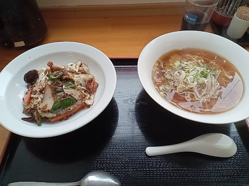ランチメニューだと、写真のラーメンセット(800円)が、ドリンク(中くらいのコップ1杯分)1杯サービスなのと、ラーメンの麺が結構多い。 片割れのご飯系は回鍋肉とか青椒肉絲とか色々選べますが、こちらは量が少なめ。 総合的には、この量だと他ジャンルの飲食店と比べてもまだ少し値段が高いと思う。