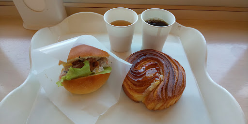 おすすめはホテル食パン、キッシュ、シュークリーム、サンドイッチ、ホルン、チョコチーズタルト、ホワイトカスターです。 パンがこんなに美味しくて安いだけで充分満足なのに、パンと合う『寿屋コーヒー』のホットコーヒーが無料サービスで置いてあります。 コーヒーが飲めない方にはお水のサービスもあります。パンはトースターで温め可能です。 イートインコーナーはテーブル席とカウンター席があり、店内奥にはトイレもあります。 駐車場はありますが、狭めです。 袋詰めはセルフですが、子連れの時に手伝ってくださりありがたかったです。 本棚に絵本やグレーテル掲載の雑誌もありました!