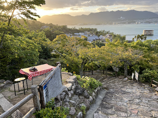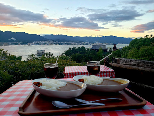 We found this place by accident. We were at the Candle Light Festival and just wandering the island. It is a little off the beaten path but completely worth the trek. We climbed the staircase and was greeted at the top. The views were amazing! We decided to eat as it is their rule to stay a purchase must be made. The man greeting us was not rude just explained the policy and I understand why they have it! Yen only. English menus available. A little on the pricier side for what it is but you are also paying for the view. The curry was pretty good. The menu was small included drinks, meals, appetizers and desserts. A few places mad me a little nervous as there wasn't tall guardrails. I would suggest if you have young kids to keep a close watch on them if you bring them. It has more of an adults or older kid, teenager vibe than family friendly. The food arrived pretty quickly. The waitstaff was friendly and tried to speak English. They did not rush us or anything and let us enjoy the view. We went on at an off time between lunch and dinner so we were the only guests. Highly recommend going just for the views and...
