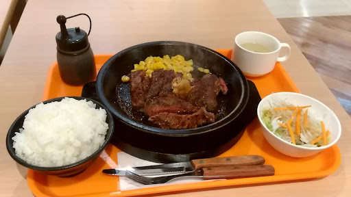 やはりフードコートだからなのかは分からないが、鉄板の加熱がイマイチ。レアで提供された物を好みの焼き加減にと余熱で焼く事も出来ず、タレをかけても蒸気すら出ない。ひと切れも口にしないうちから鉄板の再加熱をお願いするのもどうかなぁ〜と思って😅流石にそれはしませんでした。他店ではタレをかける頃まではもっとアツアツなんですが💧 やはり店舗型の店で食べるべきだと思いました。 【追記】 先日、夜営業の時間帯20時前くらいにに利用しました。 サラダとライスは売切れです!とのこと。スープだけって?ありえない💧既に肉を食べる気満々だったので、肉と生ビール🍺だけ注文し、同じフードコート内の「スタ丼」でライスをgetしました😅