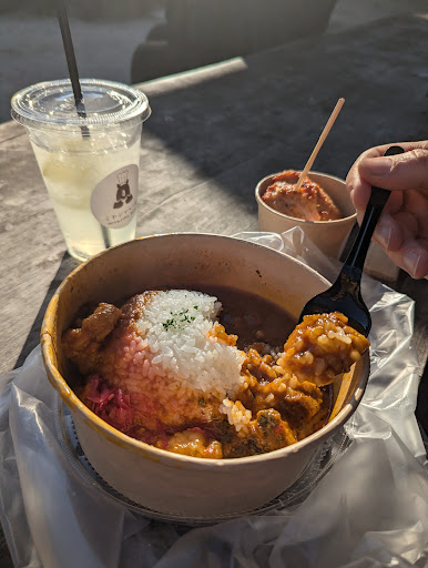I have absolutely terrible photos but we got the spicy beef curry (for us, it was not remotely spicy), fried chicken and lemonade combo and it was absolutely delicious! We also got the donuts which were bit sized portions of deliciousness.