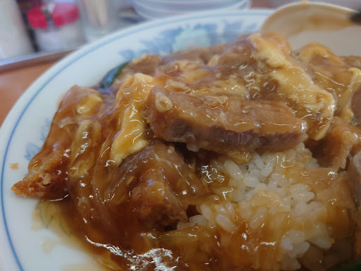 かつ丼は、トロトロ卵と甘めの餡が最高です。ランチ時は大盛無料です。