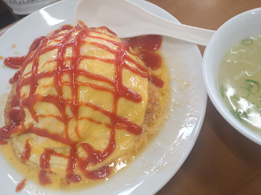 オムチャーハンは、ご飯の部分もケチャップで味付けされているから、チャーハンというよりは、オムライスです。