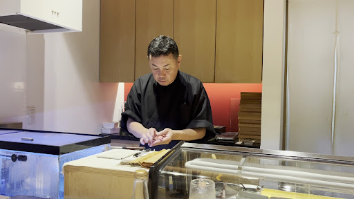 A tucked in place in Hayama for those who like great traditional sushi with serinity to go with it. This is a very quaint place that uses seasonal locally caught fish to set the stage for fine dining while mixing traditional and modern motifs. This is a very intimate place, you will find 6 chairs at the counter and table for 4. This place offers parking but you will have to drive a block pass the restaurant and once you see the shop "Ride", a parking lot right after it will have three spots for the restaurant. All in all this is a good treat for those who are looking for traditional food in an environment of calmness...