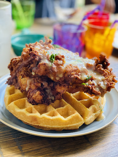 We ordered the Chicken & Waffle (Full Order, which includes two large pieces of Chicken), the Grilled Ceasar Salad (including a delicious pork strip), and a kids order of Chicken Tenders and Fries. The chicken was seasoned really well, had a great crispness to it and juicy and tender, perfectly cooked. Everything came in very large portions which I wasn’t expecting but was happy to see (I felt we definitely got our money’s worth)!