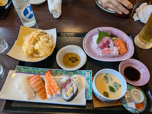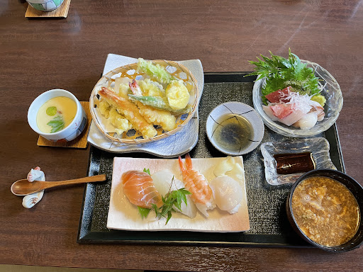 ・焼き魚 脂がのっていて味付けもいい。 ・刺身 マグロ、タイ、ハマチ?厚めに切られていてねっとりしている、かなり新鮮なのがわかる。 ・お寿司 シャリがかなり大きめ、特にホタテがぶりぶりで美味しい ・天ぷら えび、イカ、タコなどこちらも鮮度良く、海鮮メイン ・茶碗蒸し ウナギの切り身も入っていて豪華。スプーンですくえないほどぷるぷる ・赤だし 初めて食べるような甘めの赤だし、三つ葉も合う ・ゆずシャーベット よくあるシャーベット風アイスではなく、ちゃんとしゃりしゃりしたシャーベット!ゆずの皮もしっかり入っている