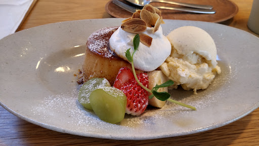 注文したのは、プリンケーキ~バニラ付~1300円と、カフェラテ660円。 プリンケーキは固すぎず柔らかすぎず、カラメルの苦味がクリームでうまくまろやかになっていて美味しかったです。バニラアイスはあまり特徴がなく、少し甘さが強いかもしれません。 カフェラテはコーヒーのコクがミルクに負けておらず、バランスも良かったです。