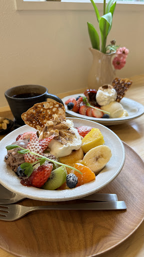 【オーダーメニュー】(訪問時の税込価格) ◆いちごのプリンアラモード(¥1,800) いちごを中心にパイン、キウイ、オレンジなど 色んなフルーツが乗ったプリンアラモード🍮 柔らかくて滑らかな食感のプリンもペロリ😋 ストロベリーアイスとチョコアイスは どちらも甘さ控えめで美味しい👍 かわいくて贅沢な一皿だった🙌
