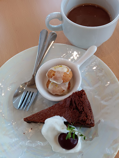 Read moreとても気に入りました。 保育園なのかな?老人ホームの向かいにある施設の一部みたいです。 子供達が楽しく遊んでいる様子を見ながらランチを楽しみました。 私は友達とスパゲッティのランチにしました。クリーム系のスパゲッティで、サーモンとほうれん草のがクリーミーで美味しかったです。 友達の海老と明太子のクリームスパゲッティもおいしかったです。 取り皿をもらって、シェアしていただきました。 デザートのケーキもたくさんあって、迷いました。私はガトーショコラに。美味しかったです。 ドリンクのシステムがちょっと珍しい。最初にソフトドリンクを頼むと、フリードリンクになる感じ。 また行きたいです。 二階席が気になりました。今度は...