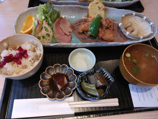 Read more24.10.14 ランチ利用。 メニューは概ね「メインが豚肉か魚かハンバーグか唐揚げのいずれか」から選ぶ感じ。 それらのメインの周りに野菜や煮物や副菜が彩りを与えている。 ご飯は他の投稿者さんが書かれている通り。この日は鶏飯だった。 唐揚げは米油で揚げられている様で、サックリした食感とサラッとした触感で、油っぽさが抑えられて胃もたれせず食べられる。 しかも、不必要(あるいは過剰)な味付けをしてないから、素材の味がとても活きていた。 そして、豚肉の方は…と言うと、 (同伴者に1切れ分けてもらったら)これは非常に悔しい思いをした…。 その理由は「こんなに美味しいなら、豚肉の方にすれば良かった!」と…。 低温調理された豚肉は想像以上の柔らかさで、脂身さえも甘く感じる。 それに付くソースは黒胡椒をベースとした物で、これもまた豚肉の美味しさを邪魔しない絶妙さ…。 私は低温調理の事を詳しく知らないが、おそらく温度管理の手間と、適切な熱入れに時間の掛かる調理法なのかな?と勝手に思っているが、普通の料理店では効率を重視して敢えてやらないだろうと思う。 野菜類は地産地消らしく、地元の農家さんが手塩にかけて育てた物が使われていた。 お味噌汁の具は人参や玉葱などが入っていたが、そのどれもが甘味が強い。(特に玉葱が本当に美味しい!と思った。) さて、最後は値段について。 ここまで書けば、1,800円~は妥当、或いは安いのかも知れない。 ここは完全に「質重視」のお店です。 コストパフォーマンス目当てなら他店へ行った方が良い。 料理のクオリティーに対する徹底ぶりが、このお店の特徴なのでは?という気がしました。