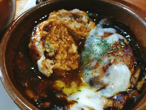 ハンバーグ定食(きのこデミグラスソース、チーズトッピング)をいただきました! ハンバーグは肉汁たっぷり、熱々でたっぷりのデミグラスソースに浸っています! チーズはトロトロっ! 醤油がかけてある温泉卵をご飯に乗せ、ご飯とハンバーグを一緒に口の中に入れると… 口の中でスゴイことになります(笑) 肉汁たっぷりでデミグラスソースが絡んでるハンバーグにトロトロチーズと温泉卵が絡み、さらに白メシが絡む… 最高です(. ❛ ᴗ...
