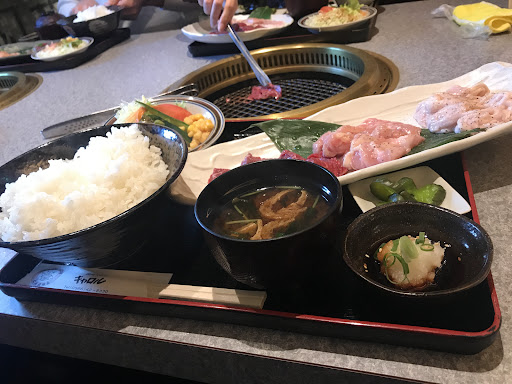 Read moreランチに行きました。 駐車場は店前と道路を挟んだところにありますのでいっぱいで止めれないと言う事はまあないと思いますが人気店なので店に一度確認してから行ってください。 入り口は狭く車椅子では困難です。 トイレは2つあり自分が入ったところは清潔でした。 席はテーブル、個室、掘りごたつ席があり、個室は掘りごたつではありませんので膝ほ悪い方はテーブルか掘りごたつ席の空きへどうぞ。 ランチは画像を見て下さい、タレは味が最初から付いているものか、大根おろしのタレが付いてきます。 案外この大根おろしタレがランチに合うと言うか、昼間から焼肉で重いなぁと感じる人でもこのタレならさっぱりしてますのでいけるかと思います。 私も最初はテーブルにタレがないんかい?と思いましたが食べ進めるうちに大根おろしのタレで十分でした。 焼肉店のランチにしてはこの肉の質でこの値段はお値打ちだと思いました、またいきます。 あっ、ち...