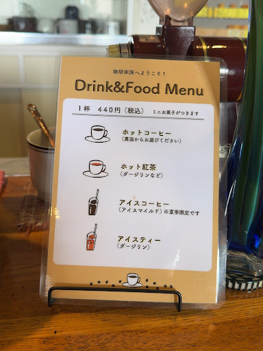 入って左側はイートインスペースで、珈琲と紅茶を選べる。 ホットコーヒーは様々な豆から選べるみたい。 今回僕はアイスコーヒーを注文。