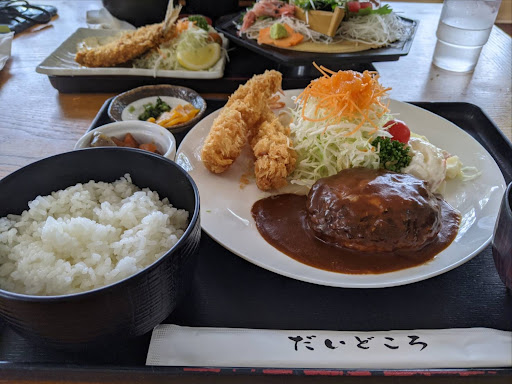 Read more店内はテーブル席と座敷席(掘りごたつ式ではない)があり、空いていれば好きな席を選ぶことができますが、平日でも昼時は待ち時間が出るくらいの人気店です。 スタッフは活気があり明るい雰囲気で接客されています。 料理は美味しく、想像以上のボリュームがあり、お腹いっぱいになりますので価格以上の価値を感じます。 ただ、残念なことは客層が比較的高齢者が多いにもかかわらず、冬の寒い時期でも暖かいお茶のサービスがありません。氷の入った水飲のみではせっかくの料理もなにか残念でした。 また、支払いが現金のみでカード等ではできませんでした。レシートも渡されることがなく後からの確認ができません。 あおいパークに新鮮な野菜を買いに来た際、また食べたくなる食事...