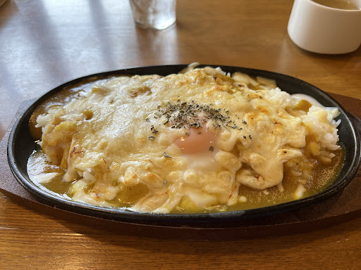 Read more忖度なしの感想です。たまたま通りかかったので入店。鉄板焼きカレーを注文。自家製なのは伝わってきましたが、カレーは油少なめ野菜の甘味が強め水分多め、ホワイトソース(?)もシャバシャバしてて、塩気がチーズにしかなくて、薄味で水っぽかったです。鉄板焼きというか鉄板にご飯とカレーとホワイトソースとチーズを載せてオーブンで焼いた感じです。 前菜、スープ、ドリンク、デザート付きで1200円でした。