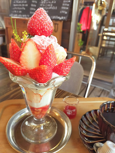 Read moreカフェ目的で初訪問。駐車場は広く別に第2駐車場もありました。 お店は広々して落ち着ける雰囲気。 ランチ後だったのでスイーツとコーヒーをいただきました。期間限定のいちごパフェ。 お値段1500円とお高いけど最近はどこもこれくらいしますね。別添えでいちごソースも。 いちごは上にも横にも、さらにグラスの中にもスライスいちご。甘くて美味しい。 バニラ、いちごアイス、ヨーグルト、生クリーム、いちごソースに少しのグラノーラ。 バランスよく最近食べたパフェの中では一番美味しかったです。コーヒーのカップもかわいい。 今度...