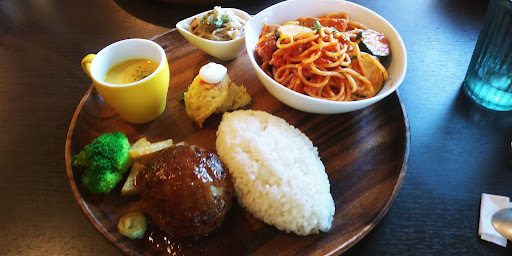メニューの内容に関しては他の方の口コミどおり。 料理の味は 私のバカ舌にはあわず、 なんか輪郭がつかみずらいお味でした。 期待していたパスタも??な感じの味。 この日のあっさりパスタは 「ゆばたらこの ほのかなしょっつるスパ」 良くわからん名前どおり 一口たべて、? 超うす味で、上に乗ったたらこの塩味で食べようと まぜましたが、?? おまけに たらこが生臭い! 妻が頼んだこってりパスタは 「トマトで煮込んだホロホロ豚のスパ」 こちらも 一口パク・・・??これでこってり?? 単なる酸味の強いミートソースやん・・って感じ。 パスタの相棒にセレクトした てごねハンバーグは ジューシーでおいしく、妻のドリアも おいしかったけど、パスタは今二つでした。 妻が頼んだデザート、コーヒーはおいしかった。 男の私にとっては、ちょっと物足りない 昼飯になりました。