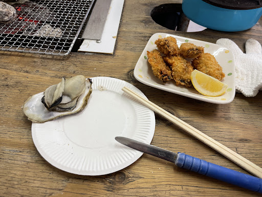 Read more車は外の海岸線に並べます。 中に入るとすく受付があり、人数、名前を記入。 初めてだったので、システムを説明してもらい、注文しました。 炭代が掛かります。 バケツ1杯の焼き牡蠣。 カキフライ、牡蠣ご飯(炊き込みご飯)、焼きホタテ、ホタテのグラタン等のメニューも、注文。 飲み物もあり。 案内されたテーブルに、炭が入り、 火箸や、エプロン、紙皿が配られます。 焼き方も説明受けられるので、慣れてなくても、安心できます。 私達は、他の牡蠣小屋行ってるので、そこの説明は省きました。 味、美味しかったです✨ 焼きホタテも注文しましたが(1つずつ)牡蠣だけでも十分です。 カキフライもおいしかったです~😀 火に掛けて、上から覆う物がないので、すごい爆ぜました!びっくり🤣 レモン(ハーフカット)は注文出来るけど、ポン酢や醤油なんかはありません。 けど、十分おいしかったです。 広島での牡蠣小屋に慣れてると、少し不親切に感じるかも。けど、ホントに美味しいので、ご安心ください😊