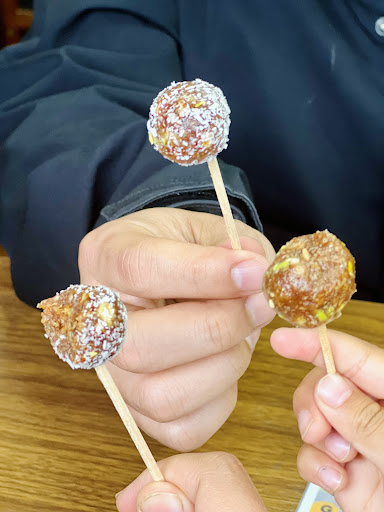 I like Syirian foods, and it’s halal insyaAllah. It’s really good, the taste are not to sweet and not to thick, they have their own flavor that can make you want to comeback and eat them. But it’s not open every day, so don’t miss it. First serve is the ball sweet made from dates, coconut and other. Second I order rice with chicken, i love it. It’s my favorite, soft chicken with nuts and basmati rice (you can share it, it’s big). Third is Shawarma, crunchy outside but juicy inside. It’s marinated chicken with some vegetables. And it’s easy to eat and make you full. Try it! And the last I have dessert, you should...