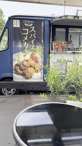 キッチンカーで 注文 現金のみ。 店内 4人掛けテーブル4 テラス席 1 おこちゃまの スペース有り