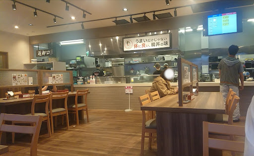 フードコートみたいな感じ。 ①食券を買う。(やよい軒みたいなタッチパネルの券売機。店内飲食用は一台しかないので、店はガラガラなのに、券売機前だけ混雑している。) ②席に着く。(発券した段階でオーダーが通っているようで、券を店員が回収するなどの段取りが省かれる。しかしその説明がないので、この券はどうするのかな?と少し戸惑う。) ③セルフの水を取りに行く。(セルフコーナーは店内奥の方。店員が空席の管理を全くしていないので、「水はセルフです」的なポップがそっぽ向いていて気付くのに時間を要した。コップがびしょ濡れの状態で置いてあるし、ヌルヌルした。) ④食券の番号を呼ばれるので取りに行く。(提供台の横にお子様ようの食器等がある。受け取ったお盆がヌルついていた。) ⑤食後は返却口へ、食器を下げる。
