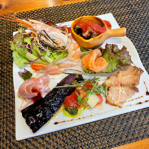 店内に入ってから数段降りた所に受付があってフロアの女性が居ましたが、予約確認や席への案内の声がけもなかったので不安になり「18時予約の〇〇です。私、予約日間違えましたか?」と聞くと「いいえ、大丈夫です(^^)どうぞ〜」と、言われました。 明確にどの席か分からないような、空いてる席どうぞ〜みたいな感じで言われたうえに、どの席を見回しても予約席とわかる準備もなかったので益々困惑しました。 今思えば、この時点で帰ればよかったです。