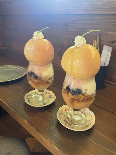 パフェは、見た目も食器もオシャレなので、まずテンションが上がる。 グラスの中に底上げ目的のフレークやジュレが等入っている店が多いが、ここでは桃の中・グラスの中共に桃に合う試行錯誤されたデザート入っており満足感大。味も甘すぎず品があるので、若者だけでなく幅広い年齢層にもウケが良いだろう。