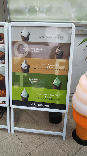 2024/ 北海道バニラ×特選抹茶のミックスをいただきました。 バニラはよくあるタイプのもので抹茶は特に濃いとかそういう特選感は全く無く、まぁワッフルコーンがチョコ風味でちょっと珍しいかな、くらい。 食べやすいソフトクリームでしたが、注文時に特選抹茶ミックスのことを「マチャミ」と略していたのが可...