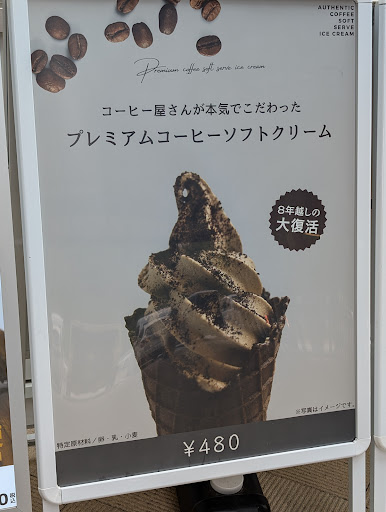 2025/06 コーヒー屋さんが本気でこだわったプレミアムコーヒーソフトクリームをいただいてみました。 立看板のような珈琲色のソフトクリームではありませんでしたが、しっかりと香るコーヒーの後味がなかなか良く、これは暑い季節にも合うソフトクリームだと思いました。