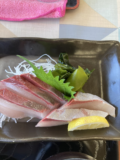 引田インターを降りて徳島方面へ走行し、すぐにスーパーマルナカ引田店の案内板を左へ5~6分くらいの所にあるワーサン亭。目の前に瀬戸内海を見ながらの食事でしたねぇ。これからの香川県東かがわ市引田町のオリーブブリが旬。脂がしっかりとのっており、身もプリプリ食感が楽しめて、後に甘みが印象的なオリーブブリでしたね。また、引田町は養殖ハマチの発祥の地。餌にオリーブの葉を混入しハマチに与えオリーブハマチ。オリーブブリとこれから忙しい時期の引田町漁師さん達。その引田漁港すぐ近くにワーサン亭がありました。店は2階にあり入るとテーブルが大きく広い空間でした。ガラス越しには釣り堀が見え釣り人も何人か釣りをしてましたね。そしてハマチの餌やり、タイ釣り体験なども出来るという事でした。さて、私が注文したのはブリ刺身定食。ぶ厚く切った刺身が5貫盛りつけていて 何とか一口で入りそうな大きさの刺身。刺身の断面は光沢があり、表面には脂がまとっている様にも思えました。口に入れるとプリプリ感と、脂の甘味が同時に味わえましたねぇ。また味わいたい...