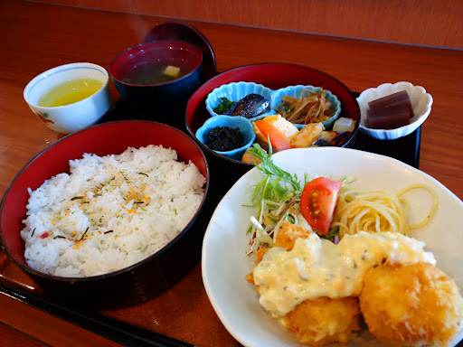 ランチで利用しました🎵 入口に今日のランチのメニューが掲示されていて、お昼は2種類のメニューから選択することができます💓 この日は『かにクリームコロッケ』と『カキフライ』でしたので、大好きな『かにクリームコロッケ』をいただきました‼️ メインのかにクリームコロッケのお重と煮物や焼魚など色々詰まった二の重が⁉️ ご飯のお重も含めて豪華三段重+お味噌汁+水羊羹😄 大変美味しくいただきました‼️ ただ、残念ポイントとしてご飯の上のふりかけは不要かな❓️おかずがたくさんあり、味わうのにはふりかけがジャマしてる❓️またチープな印象を持ってしまう❓️ように私には感じられました… ふりかけをかけるorかけないを選択できるようになったらなぁ~と。 お料理は大変美味し...