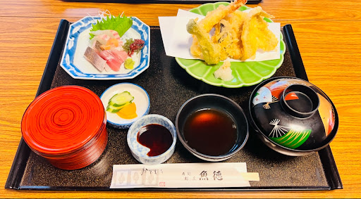 Read more国道34号線、東そのぎインターから嬉野方面に少し走った国道沿いに魚徳の看板があるのですぐにわかる。 駐車場は幾分狭いので注意して駐車。 店内は日本料理屋さんそのもので、雰囲気も良い。 初めて行った時は「ご予約ですか?」と尋ねられたがとびこみだったので「いいえ」と返答。一応確認のために「普段は予約した方がいいですか?」と聞いてみたら、「その方が確実です。」と言われた。 行ったのは平日だったが、意外と客は多かった。 メニューは豊富で、魚料理の他にも鯨料理で有名な店。今回は日替わり(鳥唐揚げまたは魚がある)の魚を注文。程なく美味しそうな「キスの天ぷらとヒラス(平政)とヒラメの刺身」が出てきた。これで1200円。 まぁ、破格という程では無いが、価格に見合う味でとても美味しく、量的にも十分で満腹になった。次回は鯛のカ...