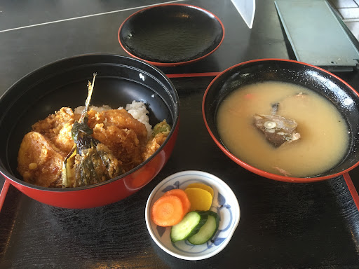 Read more2022.10.22 埼玉から一泊伊豆ツーリングの途中、「地魚天丼900円」の看板に吸い寄せられ入ってみました。 海鮮丼とか金目の煮付けを売りにしているお店は沢山あるなか、この看板は自分的にはインパクトありました。 店内入ると2階に通されます。テーブル席と座敷がありました。 気になる天丼ですが魚だけではなく、さつまいもやナスが入っており、肝心の魚は白身魚とイカだけでちょっとガッカリでしたが、美味しかったです。あら汁も良かったですよ。 人懐っこいおばあちゃんがいて和ませてくれます。 他のお客さんが出された麦茶が凄い美味しいと言ったましたが、確かに他のお店のより味が...