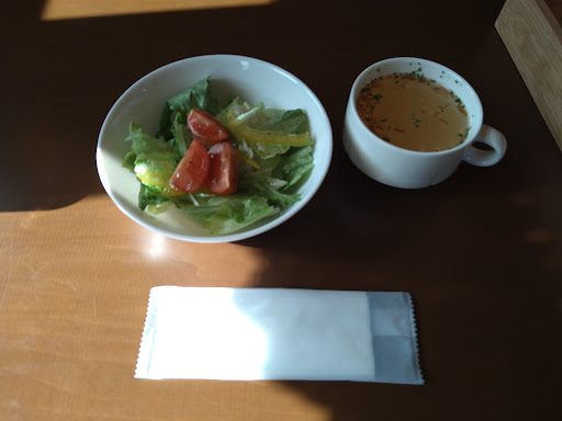 ご飯は柔らかめでした、ステーキ単品にランチサイズのピザ(平日限定)を合わせることもできるようです