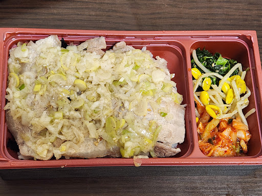 ネギ豚塩カルビ弁当を注文です。 私が頼んだときは提供も早くてすぐに届きましました。 ネギたっぷりなので、ネギ好きの私としては嬉しい限りでした。 ナムルやキムチもついていたので箸休めにもよく飽きずに食べられます。 お肉は少し味が薄いかなとも感じましたがキムチやナムルの塩味もあるので特には問題なかったです。