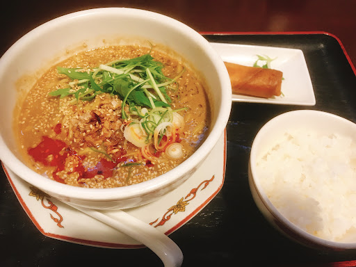 ★705 ラーメン炒飯セットを頂きました。 ラーメンは醤油、味が濃いめかなぁ。 麺は、まぁまぁ。 チャーハンは、まぁまぁパラパラ。 ただ、塩っぱい。 量を食べるだけなら良いかと思うけど、私は担々麺単品でいいわ😅 ★701😁担々麺ランチセットを頂きました。担々麺は、白胡麻担々麺だそうです。 スープ、ゴマの風味と複雑な味、ラー油はそんなに辛く無いが山椒が粒で入っています。美味しい。 辛いのが好きな人は、辛さ🌶🌶とか、🌶🌶🌶のメニューが良いと思います。 久しぶりに、美味しい担々麺だと思いました。 ただ、山椒の粒は余り好きでは無いです。香りが強すぎて、噛むと山椒の味しか口に残らないので^^; それでも、美味しかったです。 餃子は、春巻のような細長い形。薄いからか、具材のインパクトはないですが、皮がモッチリしてました。 デザートは、ほぼ味なし。レモンの物と食べると、レモンの味が強すぎる位。 評価で、愛想が悪いとかありましたが、そんな事は無いと思いました。注文の方法が、席の紙に書いてボックスに入れる方法。お水もセルフです。 12:30くらいに行きましたが、丁度混んでる時間の後だったようで解りませんが、2人でやってる店なので混んでる時には、挨拶や返事が無いことがあるのは仕方ないと思う。客が居なくても、挨拶や返事が無い店は、いっぱいあります。注文の紙に席番は書いていないので、どこの注文か解るってことは、ちゃんとお客を見てると思いました。 駐車場は分かりづらい...