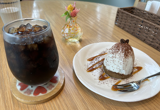Clean, fresh design, bright and airy cafe in a housing estate, but beside Peony Walk so convenient. Only parking for three cars, but you can park in Peony walk and walk over. Likewise you can get a bus from Takasaka station to the mall and walk over to the cafe. Great coffee and pancakes. They have a pancake set for children with child sized pancakes served with a 100% juice, either apple or orange. Reasonably priced. Meals available too. They have coffee classes...