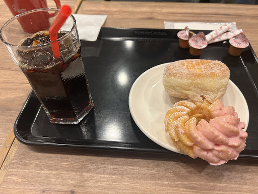 期間限定のドーナツが食べたくて平日20時前に行きました。 到着するとドーナツの種類がとても少なく、食べたい物がありませんでした。 シマダさんという女性スタッフの方が対応をしていましたが、対応が非常に悪かったです。 まず店内で食べようとしていたにも関わらず、何も聞かずに淡々とドーナツを袋づめし始める。店内で食べると伝えると店内では食べれないからエスカレーター下にあるイスで食べろとのこと。閉店は21時でまだ1時間くらい時間があるはずなのにダメと言われました。 またホットコーヒーを注文すると10分くらい待たされた。(コーヒーの機械を片付け始めていた)