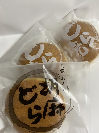家まで2時間移動の為と、お昼食べたばかりで😵諦めて(^^; 胡麻どら焼き、どら焼き、七味唐辛子のせんべいを購入!!