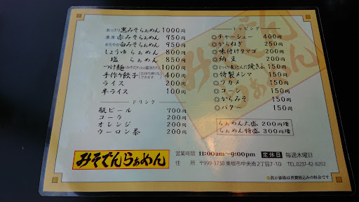 十数年ぶりに再訪しました。あまりにも久しぶりすぎて、ラーメンの味は正直忘れてました。当時接客になれてなくて店主に怒られていたアルバイトの若い娘がいたことだけは覚えてました。一人接客担当の店員がいましたが顔までは覚えてないのでもしかしたらその人だったのかも知れませんが、接客に何ら問題はありませんでした。もし、今回接客してくれた女性店員が当時のアルバイトの娘だとしたらすっかり一人前の店員に成長されたのだなと思いました。さて、そのようなことを思いながら今回は「白みそらぁめん¥850+手作り餃子¥400」をオーダーしました。 おそらく俺が知っている限り、ここの店よりも太い麺を使ったラーメンは山形どころか全国にもあまり無いです。最早ラーメンを通り越してうどんの一歩手前の超極太麺で、凄く食べごたえがありました。されどしっかりとしたコシが感じられ、大満足でした。スープも味噌の濃厚さとゴマの風味が引き立っていてコクがありました。餃子も今では珍しくなったであろう餡に入ったニンニクが荒めに刻まれたタイプの男臭さ前回の仕上がりで美味かったです。ここまでのクオリティでいて味を忘れていたことに少々反省しなければいけないなと思いました。ただ、このクオリティの味を引き出すためとはいえ、全体的に強気な値段設定感が否めません。特に大盛り+¥200、特盛+¥300はぼったくりでは?と思いました。それでも超極太麺だったため、普通盛りでもボリューム的には問題なかったです。その点が少し気になったので☆4つとします。