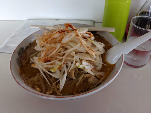 Read more初入店!ご夫婦で営業の様です!しばらくメニューとにらめっこ!ネギホルモンラーメン大盛お願いします!手際良い調理でさほど待つことなく着丼!斜め薄切りのネギを豆板醤でピリ辛に和えてありますね!ほかにはホルモン!メンマ!もやし等野菜炒めが具材になりますね味は味噌ベースのラーメンです!中太縮れ麺がツルツルモチット良い案配です!野菜もシャキと歯ごたえ良く美味しい物です!ホルモンはわりかししっかりした噛みごたえです!難を言えばも少しホルモン入れてほしいですね!スープは動物系だと思います!味噌との相性も良くスッキリした味わいてした!ボリュームも有り食べ応えありました。全体的にはよくまとまったラーメンでした。比較的空いてる感じなので急ぎ食べたい方なんかにオススメ...
