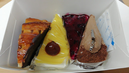 ほんとにショーケースにケーキがなく、厨房に案内されケーキを選びました。スポンジにバターを使ってないから安く売れるみたいです。パイはバターを使ってるので少し高いらしい。パイが番重に入ってなかむたので、パイが見たいと言ったら素手で持ってきました……。側面の乾燥防止に製菓用のチョコをコーティングしてるらしいです。せっかくなのでパイとケーキを買いました。パイよりケーキのが安くて美味しいです。パッサパサのスポンジかと思ったらしっとりしてた。ちょっと甘かったけど、クリームも美味しいです。シャトレーゼよりこっちのが絶対いい!ケーキの説明を聞いてる途中ふと窓をみたら猫ちゃん見つけて猫ちゃんに夢中になってしまいました。ココちゃんっていう名前なんですって。私は猫大好きだからいいけど、厨房に猫いれたら猫の毛がまうのでは……。 写真は上からチーズケーキ、アップルパイ風のケーキ、フルーツ...