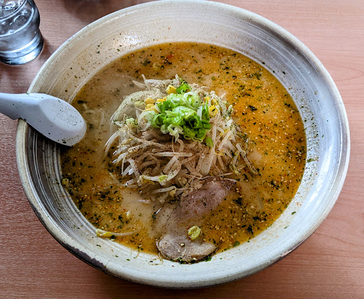 Read more娘とお邪魔しました。 県外からもお客さんがやって来るラーメン屋さん。 お店に入ると真正面から右手に広がるカウンター席。手前右手に座敷席があります。トイレは左にありますよ。 明るく、気さくに話しかけてくれるご夫婦が、ラーメンを提供して下さいます。 赤味噌・白味噌・黒味噌ベースのスープのラーメンが主力。これに、ごま味噌、魚介だしのラーメンもあります。餃子も、バッチシあります。 僕は、赤味噌の辛味噌ラーメン大盛りにチャーシュートッピング。娘は、赤味噌ラーメン。 ユニークなのは、ドンブリが、皿うどんみたいに平べったい事。少なく見えがちだけど、目の錯覚。 旨い!旨い!旨い!旨い!旨い! チャーシューの数が半端ない。が、食べ飽きない厚さと柔らかさ。麺も、ヤンバイな茹で加減。スープも、完飲されたし。血圧高めだから残したけど、9割飲んだから、同じかな。 リンゴが出たのは、ニンニク臭を抑えるための、特に女性への配慮でしょうか?美味しかったです。 実は14年前にもお邪魔してました。あの時は、お互いの出身地の話で盛り上がりましたが、此度も、同じ内容。正直、お顔もウル覚えでしたが、あの時と同じのご夫婦なのでしたか。お元気で良かった。 またお邪魔します。...