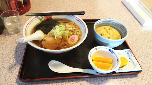 Read more初入店。カミさんと二人で。私はラーメンとAセット チャーハンとデザートオレンジ付き。カミさんは特製秘伝ダレのつけ麺で いっぴん料理でレバニラ注文。さほど待つ事なく提供されました。さらっとあっさり系の醤油ラーメン中細麺チャーシュー ナルト 海苔 ねぎ メンマ ...
