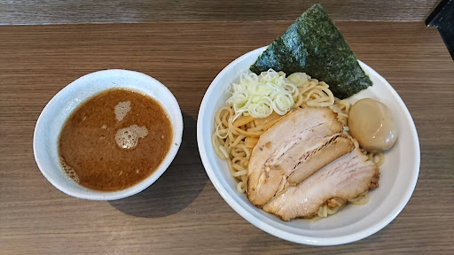 本日再訪しました。連休前のためか以前よりも混んでおらず、すんなり入店出来ました。この店に来る度に指摘してる気がする座席スペースは・・・まぁ、もういいでしょう(笑) 今回は「辛いつけ麺¥830+チーズめし¥150」をオーダーしました。以前つけ麺は食べたことあるので味の想像は出来てましたが、それに予想よりもピリッとした辛さのアクセントが衝撃的でした。スープまで割りスープにて完飲するつもりでしたが、胃腸がおかしくなること必至な予感がしたので止めときました。今回初めてオーダーしたチーズめしも辛いつけダレをかけて食べるとチーズのコクと美味い具合にマッチして癖になりました。何度か再訪してみていよいよ中毒性に気がついてきたので☆5の再評価とします。
