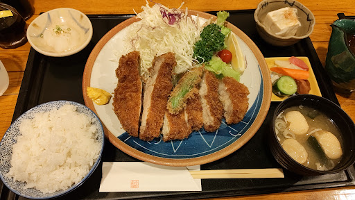 山形空港近くにある豚カツ屋。駐車場あり。禁煙。ログハウス風の建物。少々高め目の値段。ロースカツは肉厚があり柔らかく、脂身も柔らかくて甘さがある。付け合わせはキャベツ、パセリ、レモンの他ジャガイモのフライがある。ワカメの味噌汁、漬物3種、冷奴、大根おろしが付く。卓上にはソース、ウスターソース、塩、醤油、ドレッシング、梅干しを乾燥させた物、爪楊枝が置いてある。ティシュはレジの下にある。食べ終わる頃にお茶が提供される。壁にはBMWのバイ...