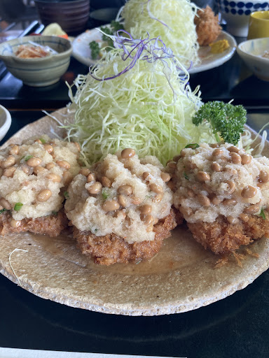 Read more東根ICから高速に乗る前に、ちょうどランチの時間だったので寄ってみました。なにげな〜く入ったのですが、店内の雰囲気がとっても良い!暖かみのある木の梁や、暖炉、インテリアも素敵で、こだわっていらっしゃるのだろうな、と。メニューは納豆おろしヒレカツ!おろし納豆がドーンとカツに乗っててインパクト大です。おろしにほどよくお出汁の味がついていて、お肉はほろほろ柔らかくてとっても美味しく頂きました(o^^o)お土産限定?のカツサンドが気にな...